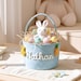 pink basket, purple basket, blue basket, yellow basket, green basket, Easter Basket embroidered with name, Easter basket with bunny and name